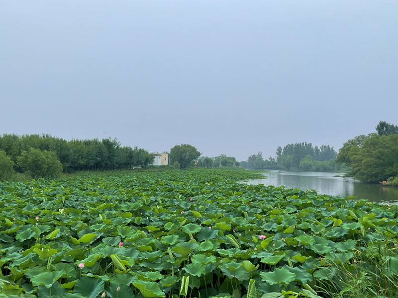 以荷花為主題,堤岸打造木棧道,河岸搭配蘆葦?shù)戎参?,充分發(fā)揮綠地效益。